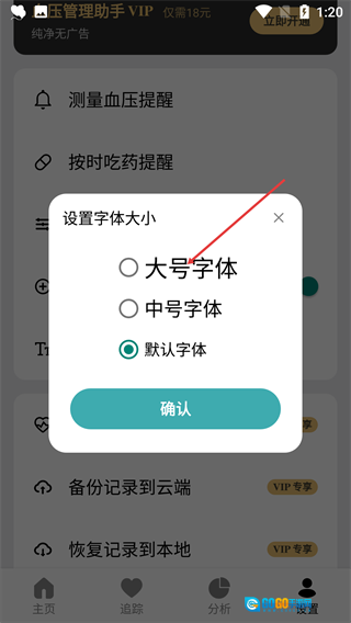 3、挑选目标字体样式(例如大号字体),接着点击【确认】按钮来提交设置。