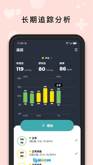运用记录工具能够随时增加个人的血压记录