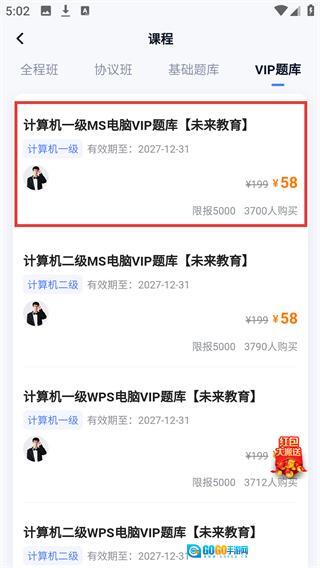 3、在【VIP题库】分类下,找到【计算机一级MS电脑VIP题库【未来教育】】课程条目,点击即可进入详情页。
