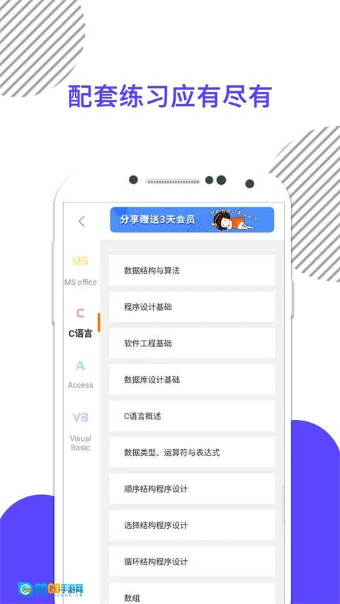 “计算机二级米考试”是一款专为计算机二级考生打造的备考软件,它不仅收录了海量往年真题供用户练习,还提供了众多名师的直播课程。在这里,你可以学习到丰富且实用的知识,助力你顺利通过考试。感兴趣的用户,快来体验吧!