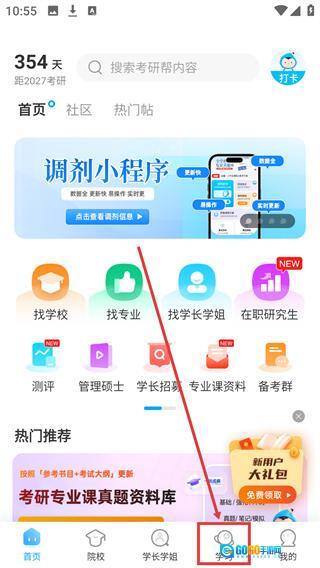 1、在考研帮首页底部找到【学习】入口,点击该入口可进入学习页面。