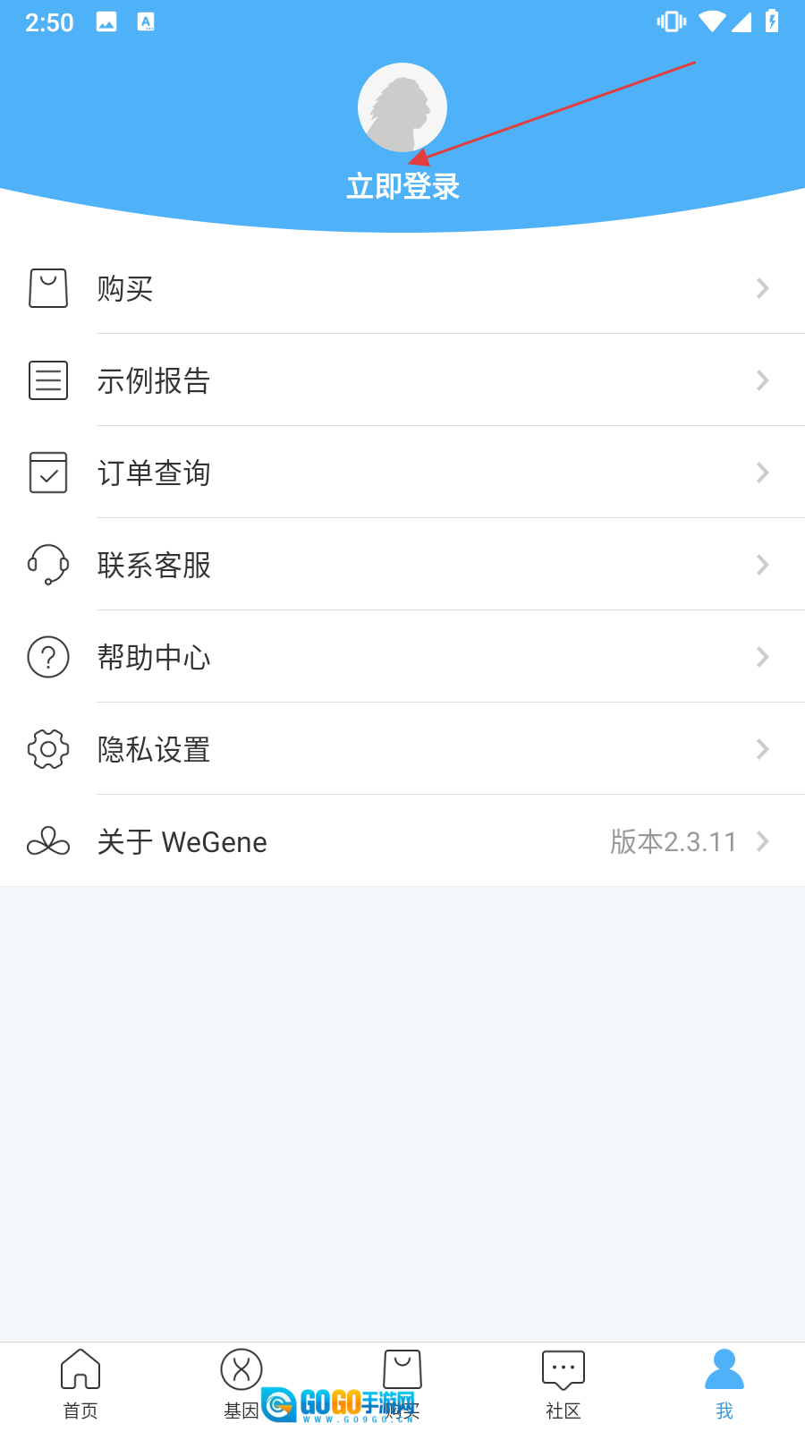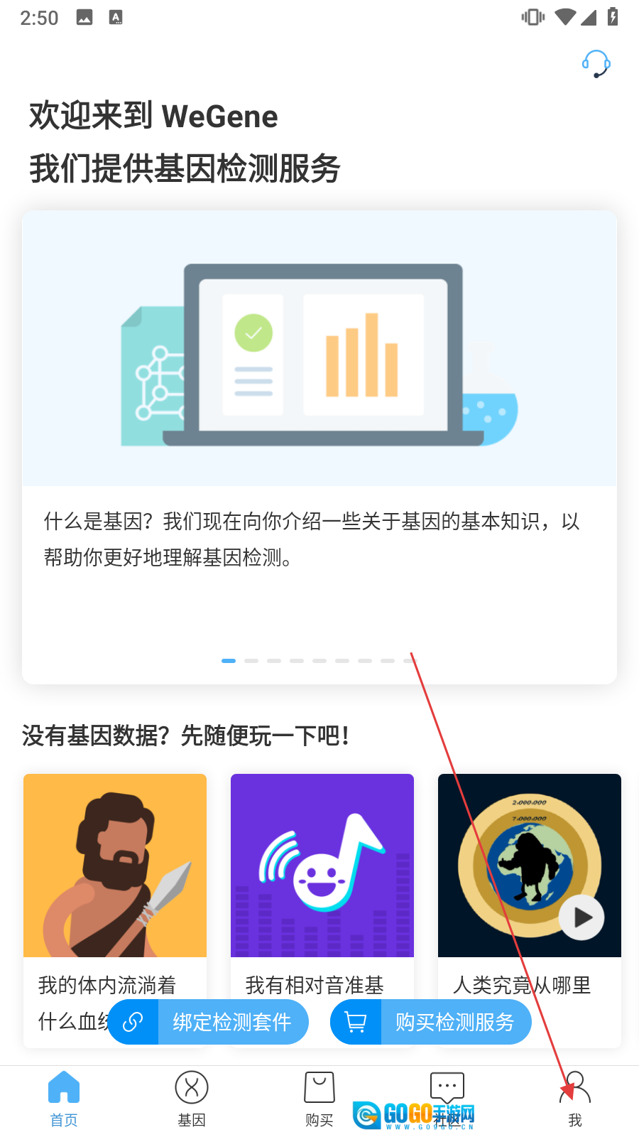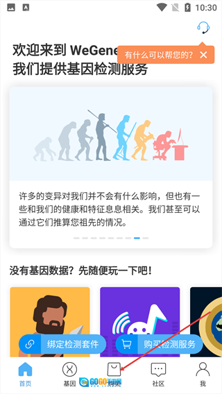 1、打开微基因社区,在首页点击底部导航栏【我】。