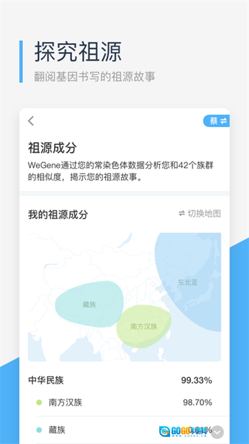 2、全面报告解读:涵盖祖源分析,让你追溯祖先迁徙路线,知晓民族成分还有营养代谢,全方位解读你的“出厂设置”。
