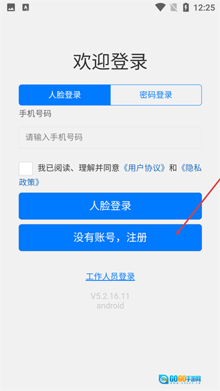 3、进入登录界面后,点击【没有账号,注册】按钮。