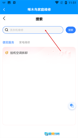 3、在输入框中填写维修需求,点击【搜索】按钮。