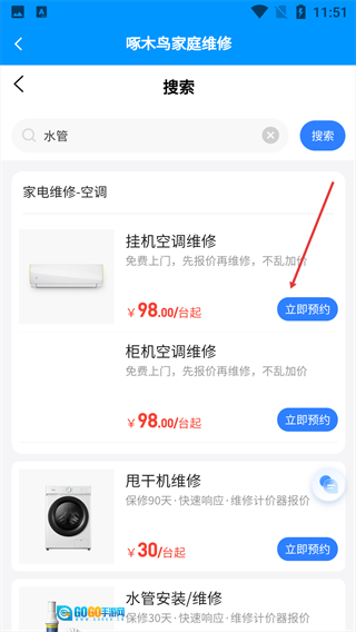 4、在搜索结果里找到你想要的目标服务后,点击该服务右侧的【立即预约】按钮。