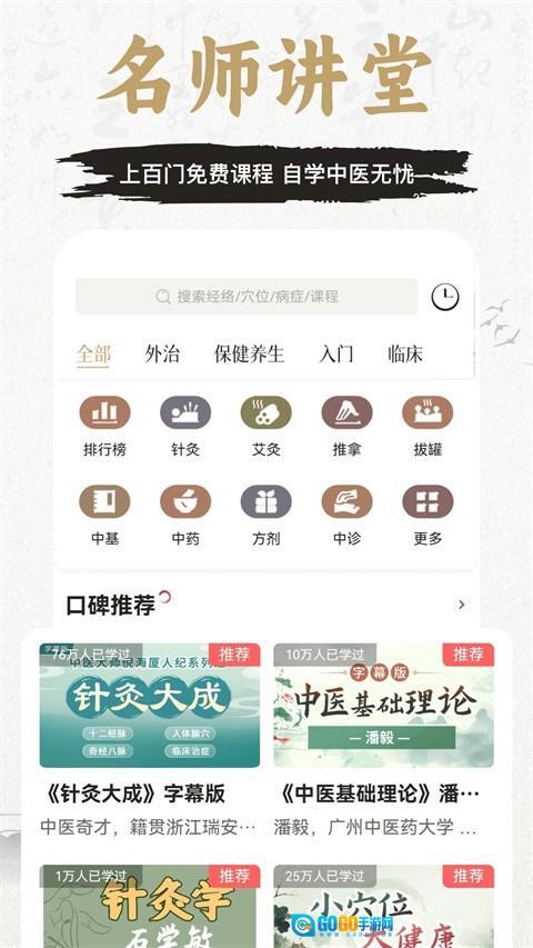1、在首页底部找到【学堂】入口,点击后即可进入课程学习页面,浏览各类中医相关课程内容。