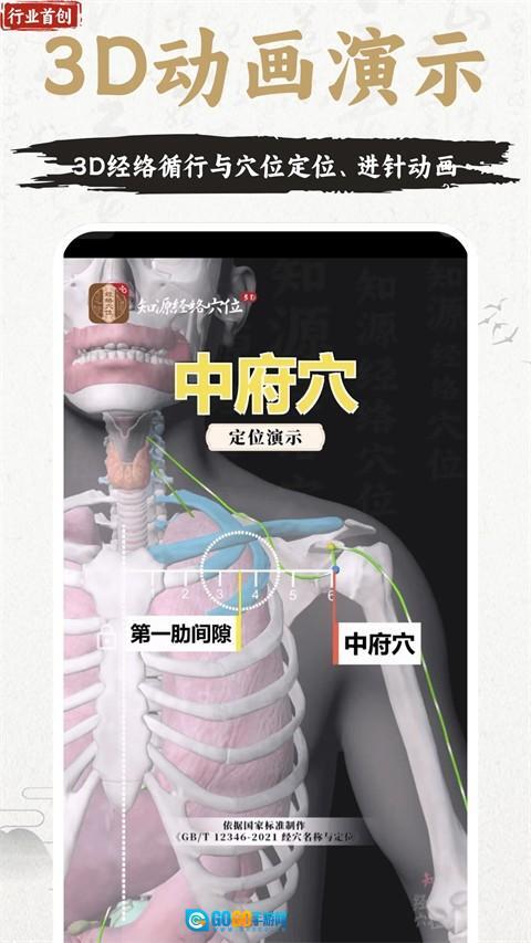 2、3D经络循行展示:借助360度3D图像呈现人体经络的具体位置及其循行路径,方便进行直观观察与深入研习。