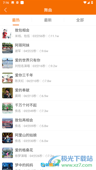 2、来到舞曲界面,选择你喜欢的歌曲进行点击。