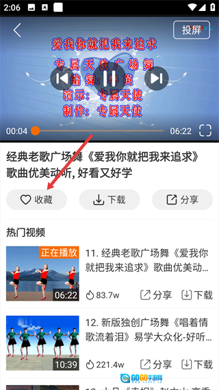 2、打开视频播放页面后,点击【收藏】按钮,即可把该视频添加至收藏列表。