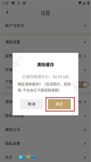 4、在清除缓存的确认弹窗中,点击【确定】按钮,即可清理图片、视频等缓存数据。