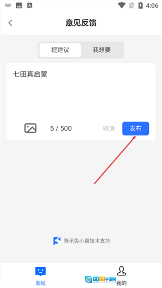 4、填写完毕后,点击【发布】按钮,提交这条意见反馈。