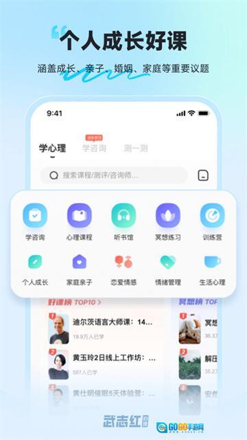邀请国内外一线心理导师(如斯提芬吉利根、武志红、曾奇峰等),提供面向大众的心理课程。
