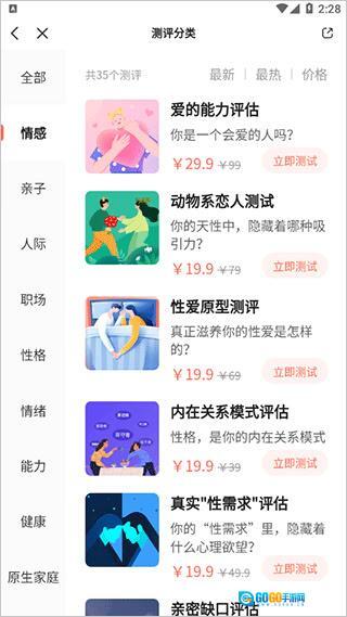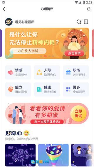 3、提供各类心理测评,实时标注每个测评的已测人数,点击即可开始检测。