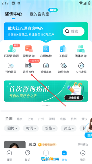 2、进入【咨询中心】页面,找到【最快可约】功能选项。