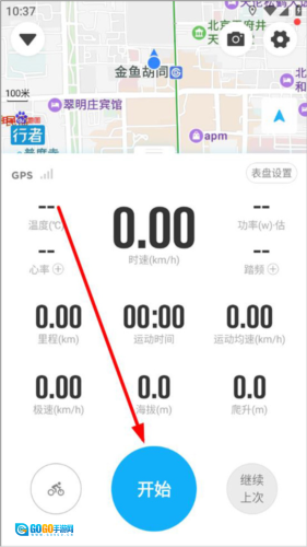 2、进入运动页面,在运动过程中可查看温度、心率、功率、运动时间、里程等,点击"开始"即可记录