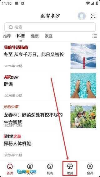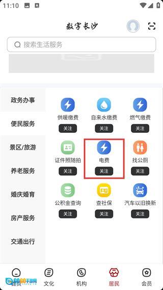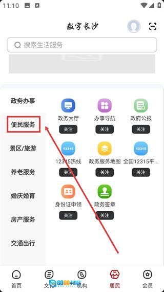 1、在【数字长沙】首页底部,找到【居民】按钮并点击,可进入对应板块。