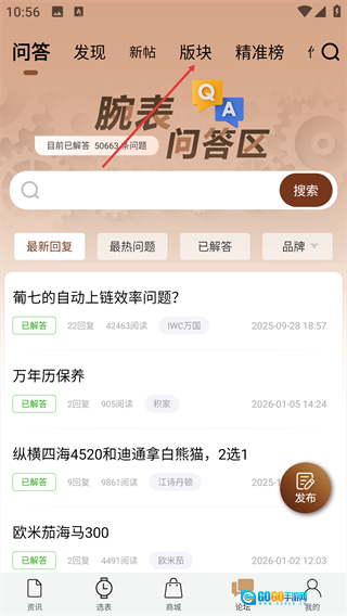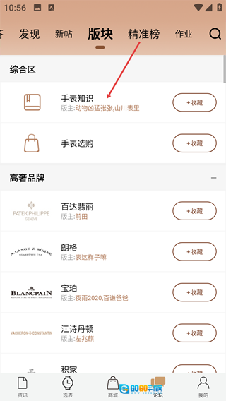 3、在版块分类界面中,选择【手表知识】版块。