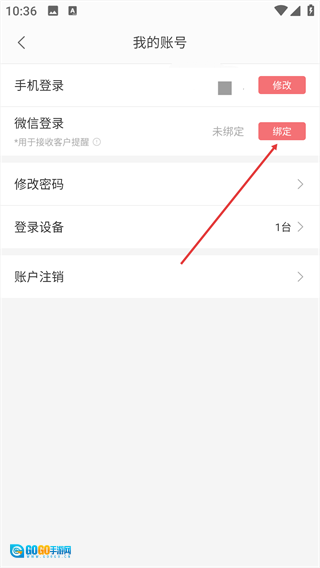 4、找到【微信登录】后的【绑定】按钮,点击该按钮就能开启微信账号的绑定流程。