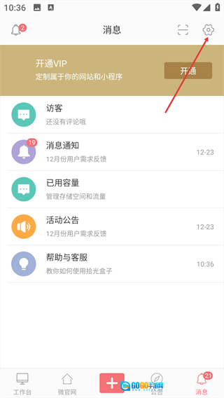 2、在消息页面,点击右上角的【设置】按钮。
