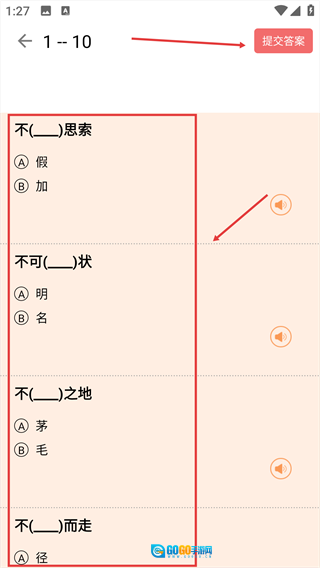 4、完成答题后,点击右上角【提交答案】按钮,完成该批次的练习内容。
