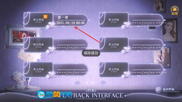 4、在存档页面里,我们选择合适的存档位置,像【第一章】这样的栏位,点击后就会显示保存成功啦。