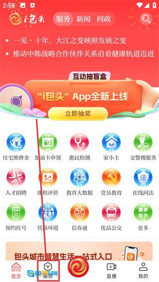 1、在【i包头】主界面,点击底部的【服务】选项。