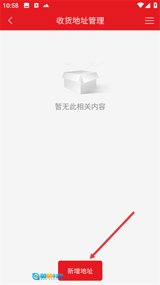 3、在收货地址管理页面,点击底部【新增地址】按钮。