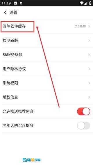 3、在【设置】页面中,找到【清除软件缓存】选项并点击。