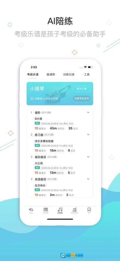 小提琴、长号考级必备助手,内含上海地区考级曲目乐谱,高质量音色示范演奏曲谱;引导学员规范地唱谱识谱;提供速度可调节拍器,以指针的形式在谱面上动态引导学员按节奏练习曲目。