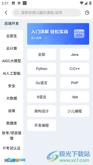 4、点击符合的类型,然后在众多课程中选择满意的一个,然后点击右下角开始学习。