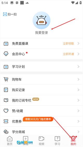1、在【我的】页面,点击页面上方的【我要登录】选项。
