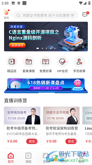2、找到首页上的“免费好课”并点击。
