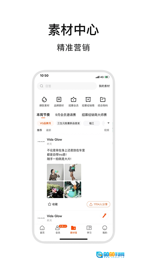 2、精选素材赋能:素材馆收纳海量优质内容,从产品海报到营销文案,随手取用即可种草客户,加速交易转化。