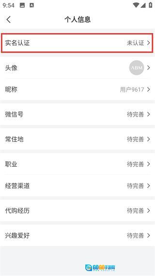 3、在个人信息页面中,找到【实名认证】选项,当前状态为【未认证】,点击可进入认证页面。