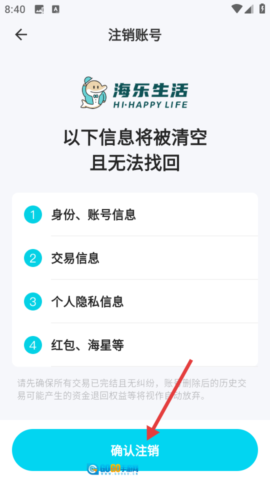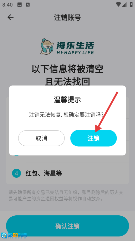 4、当弹出温馨提示框后,点击【注销】按钮,即可完成账号注销操作。