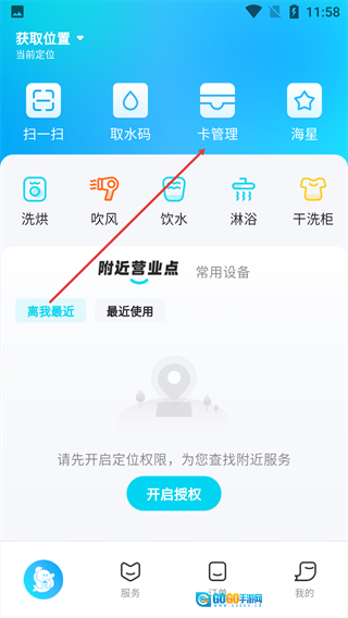 1、进入首页后,点击顶部功能区里的【卡管理】选项,即可进入卡管理页面。