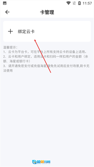 3、进入云卡管理界面后,点击【绑定云卡】按钮,即可启动云卡绑定流程。