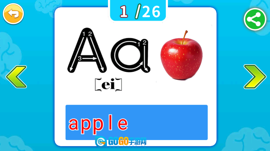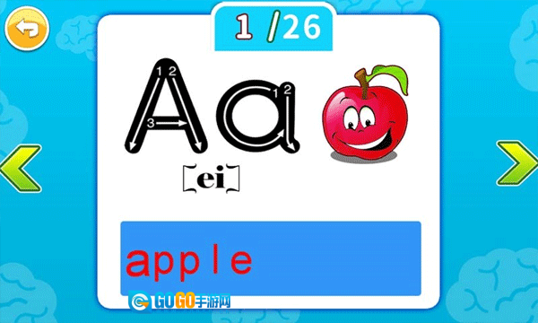 1、具备字母认知功能,通过动画展示字母形状,同步播放字母发音实现音频伴学,帮助宝宝认识26个英文字母,掌握基础发音。