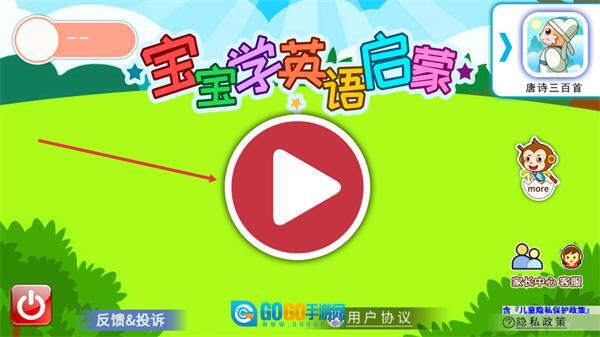 3、操作流程简化,从首页箭头进入学习界面,到点选内容开始学习,无复杂步骤,符合低龄宝宝自主操作能力。