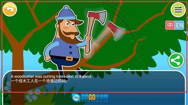 4、进入【金斧头银斧头】绘本界面后,可查看中英对照的内容。