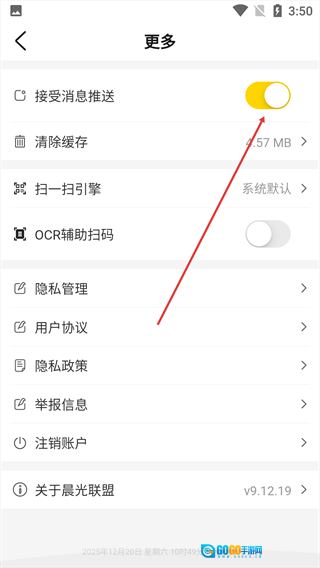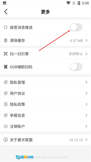 3、在“更多”设置页面中,找到“接受消息推送”对应的开关选项。