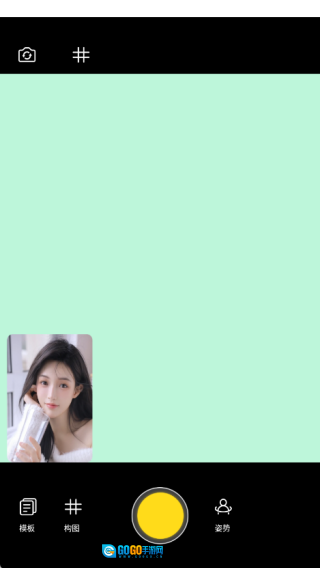 2、进入构图相机后,可使用模板与构图功能,开启这些功能即可开始拍摄。