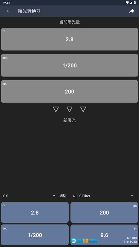3. 使用摄像头拍摄待测量的场景,Light Meter 就会对曝光情况进行计算并展示出来。