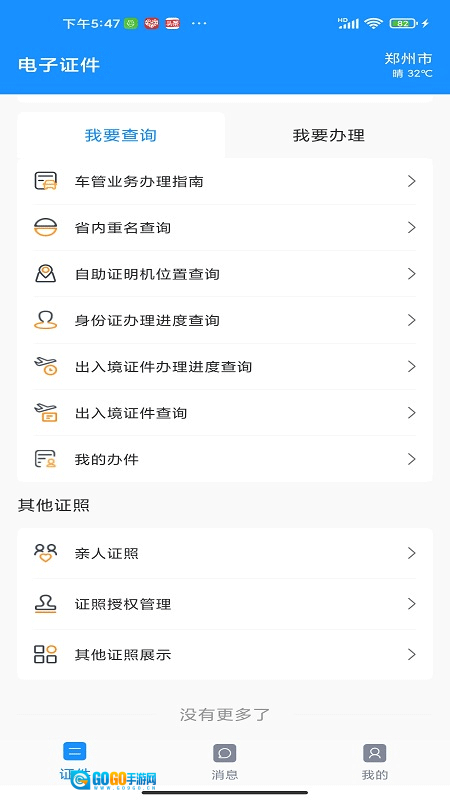 继续向上滑动屏幕,还能看到亲人证照、证照授权管理、其他证照展示等其他证照功能。