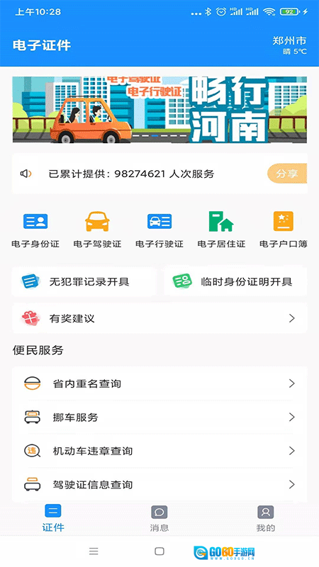 河南省公安厅为省内居民打造的河南公安电子证件,是一款依据《关于在线政务服务的若干规定》开发的电子证件软件,其电子证照与实体证照具有同等法律效力。