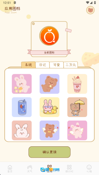 3、应用页面里设有系统、日记、可爱和二次元风格的图标,你可以随时切换成自己喜欢的图标样式。
