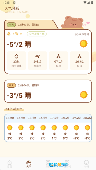 2、通过天气页面能够查看最新的天气动态,帮助你及时掌握不同城市的天气状况;