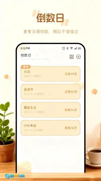 2、当重要日期倒计时进入最后3天时,系统会开启每日提醒模式,同时支持一键同步至手机日历;即便因忙碌而无暇打开软件,也能确保不错过家人生日等关键时刻。