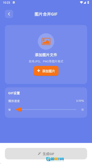 4、在图片合成页面里挑选图片,接着设置GIF的播放速度,点击生成GIF按钮就可以了。